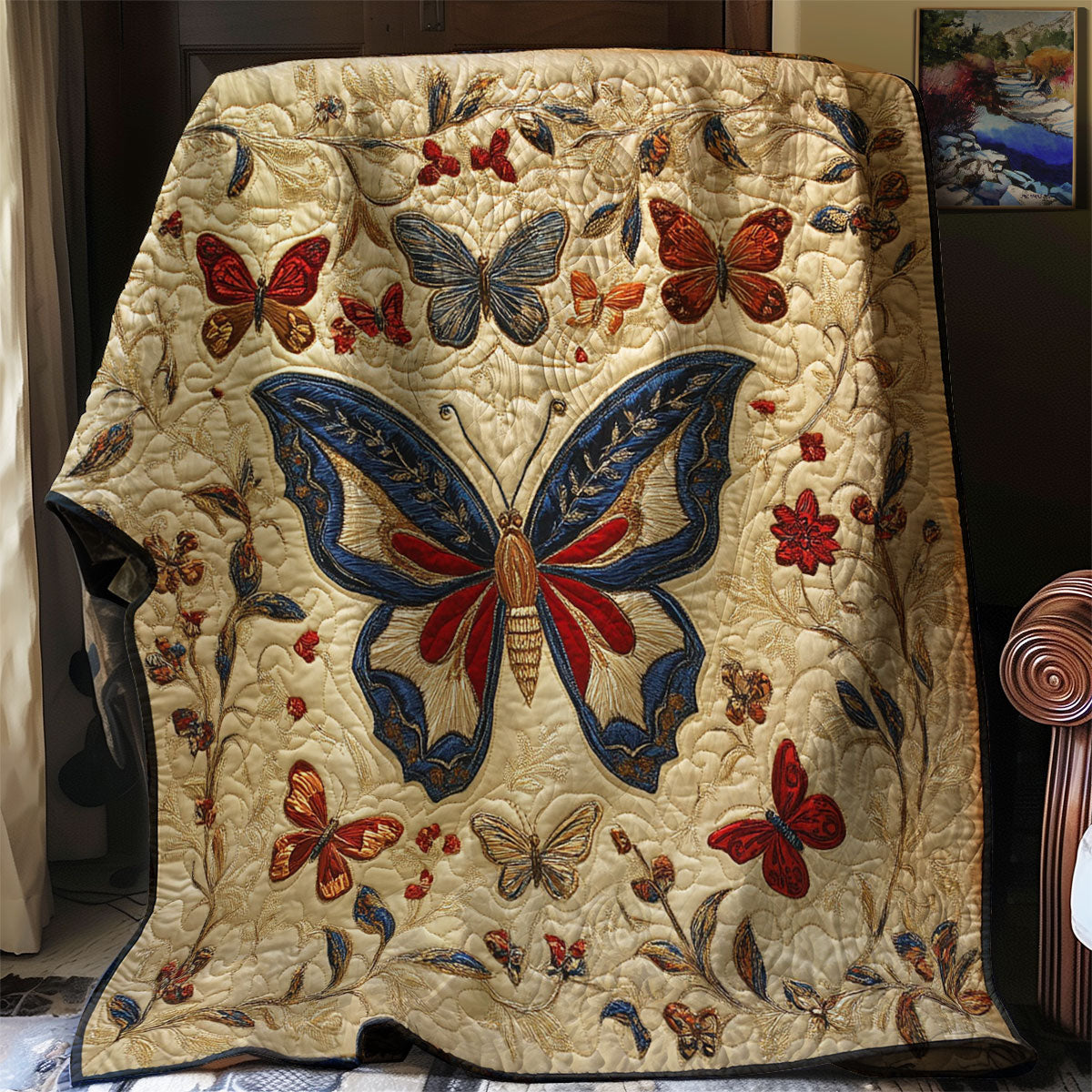 Butterfly Retro Floral Quilt Blanket Christmas Throw Blanket Butterfly Lover Gifts For Her.