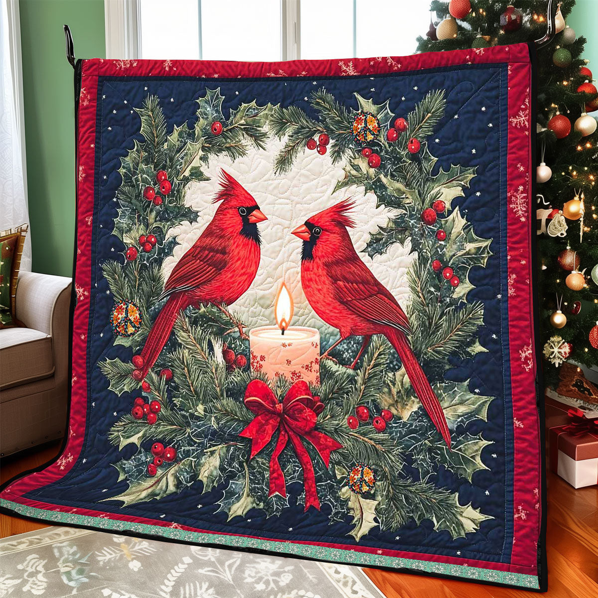 Christmas Tree And Red Truck Holiday Christmas Quilt Blanket Romantic Gifts For Couples