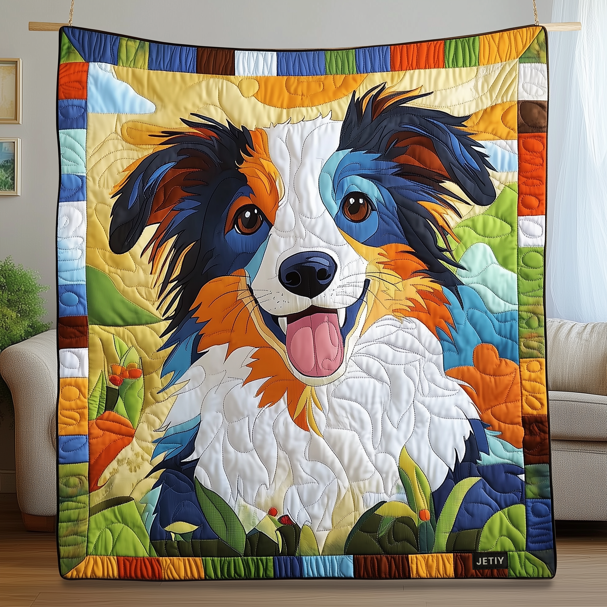 Colorful Border Collie Quilted Blanket Christmas Throw Blanket Best Christmas Gifts For Mom