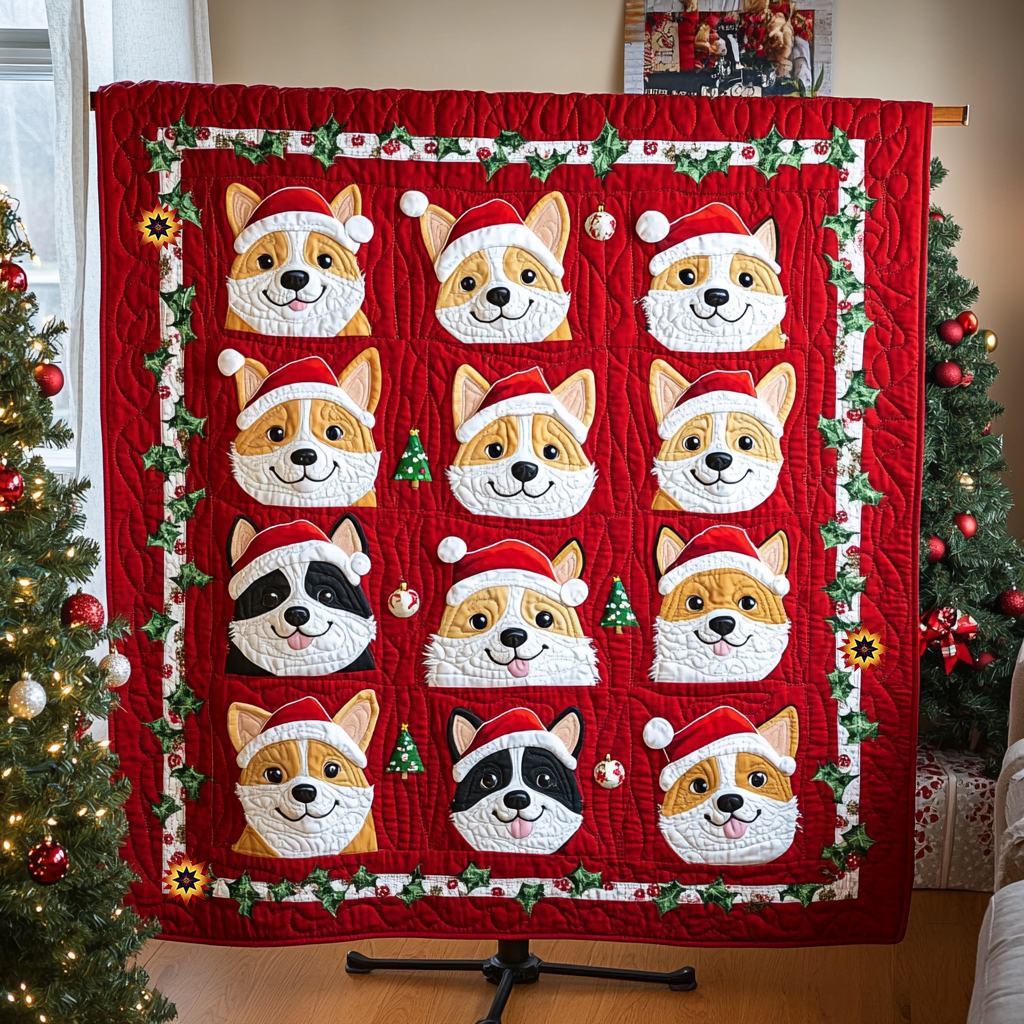Corgi Hat Parade Holiday Christmas Quilt Blanket Womens Christmas Gift Ideas