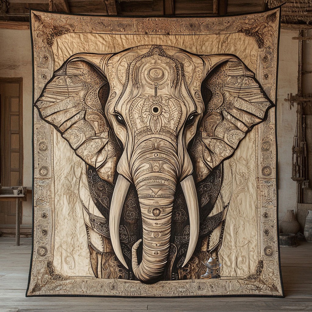 Earth Tones Elephant Holiday Christmas Quilt Blanket Father Daughter Presents
