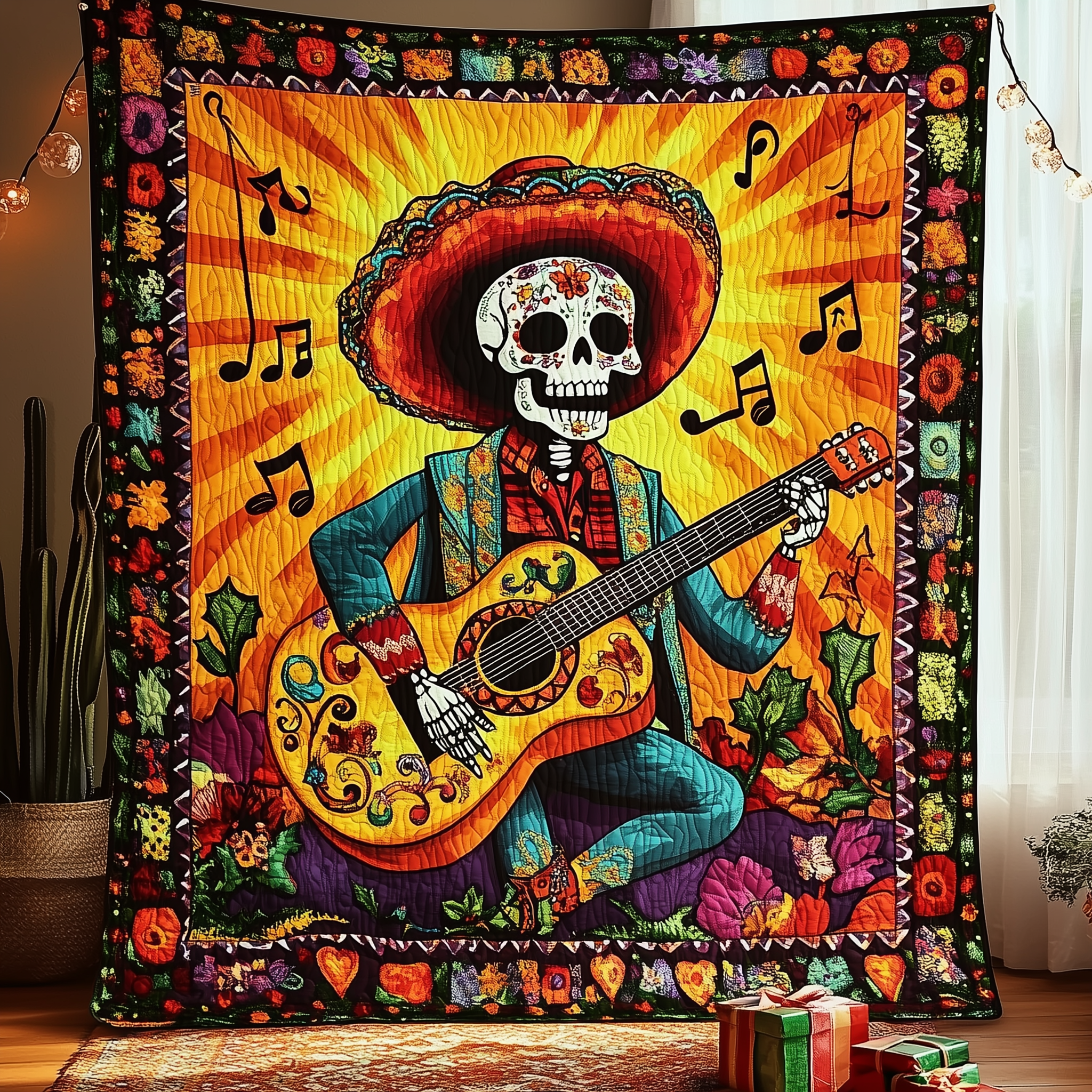 Happy Skull Couple Quilted Blanket Christmas Throw Blanket Best Christmas Gifts For Him