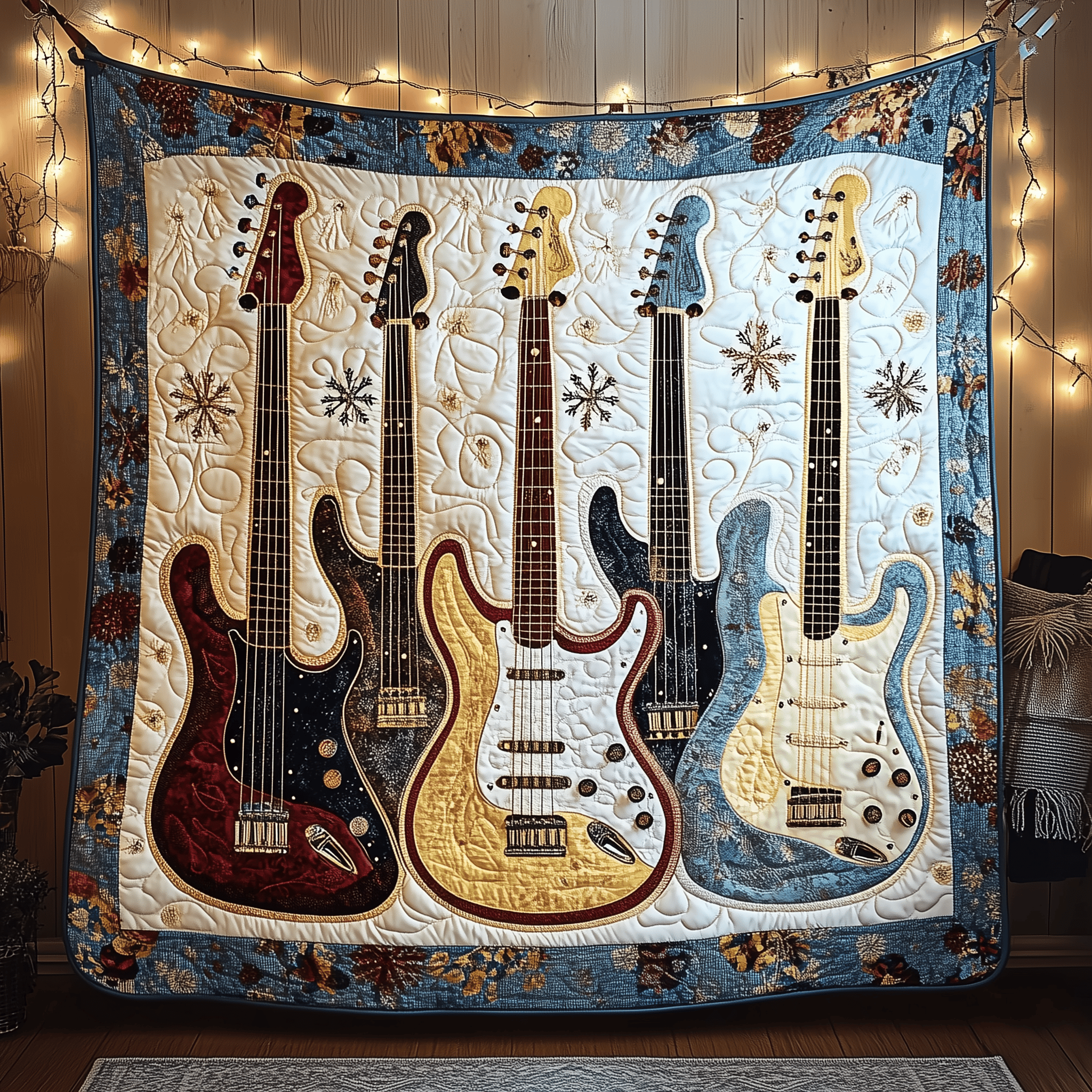 Rock N Roll Guitar Plaid Quilted Blanket Christmas Throw Blanket Gifts For Guitar Players
