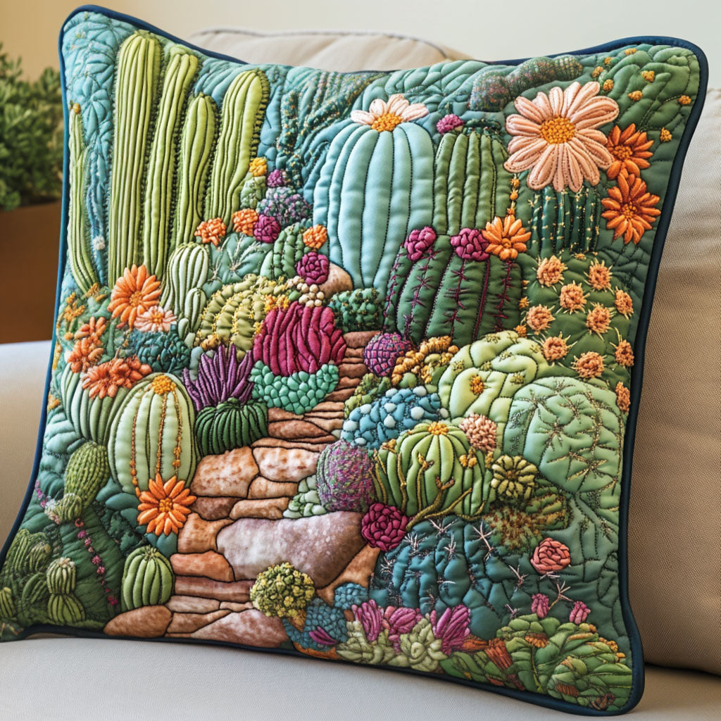 Desert Garden Quilted Pillow Case Throw Pillow Case Covers Cactus Gifts For Her.