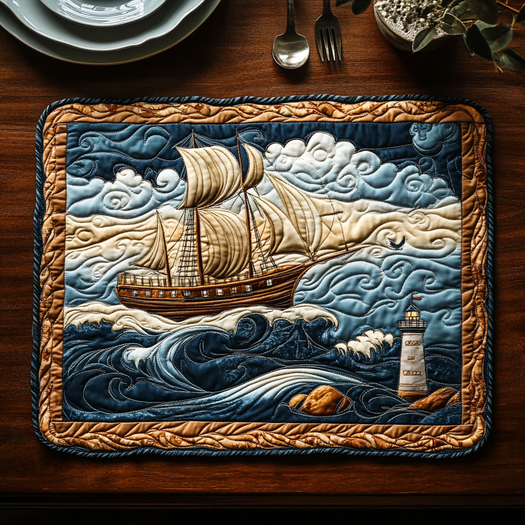 Deep Blue Escape Quilted Place Mat Modern Holiday Decor Birthday Gift For Beach Lover.