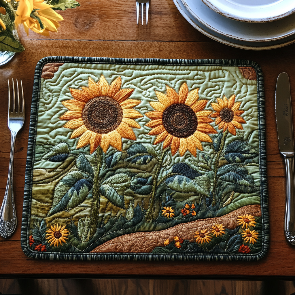 Sunshine Harvest Quilted Place Mat Dining Table Accessories Sunflower Presents.