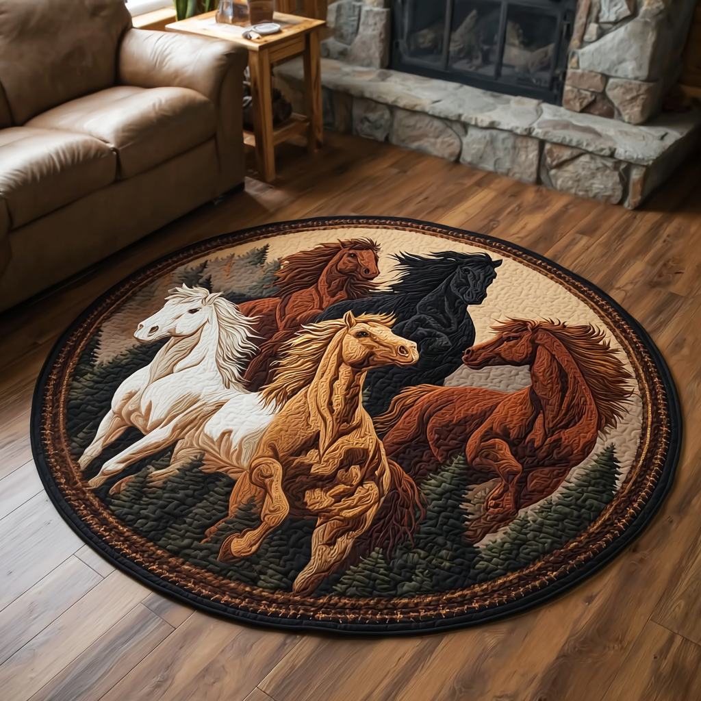 Wild Heart Quilted Round Mat Unique Front Door Decor Horse Themed Presents.