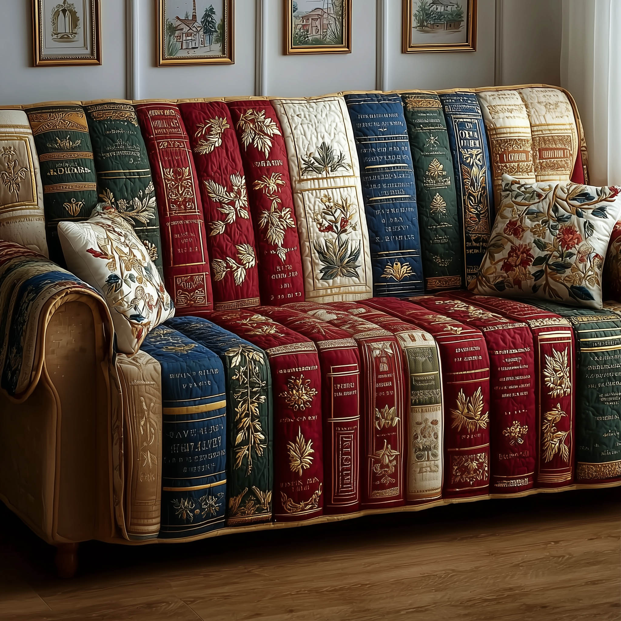 Frosted Townscape Quilted Sofa Cover Icy Winter Village Scene Train Gifts Christmas For Adults.