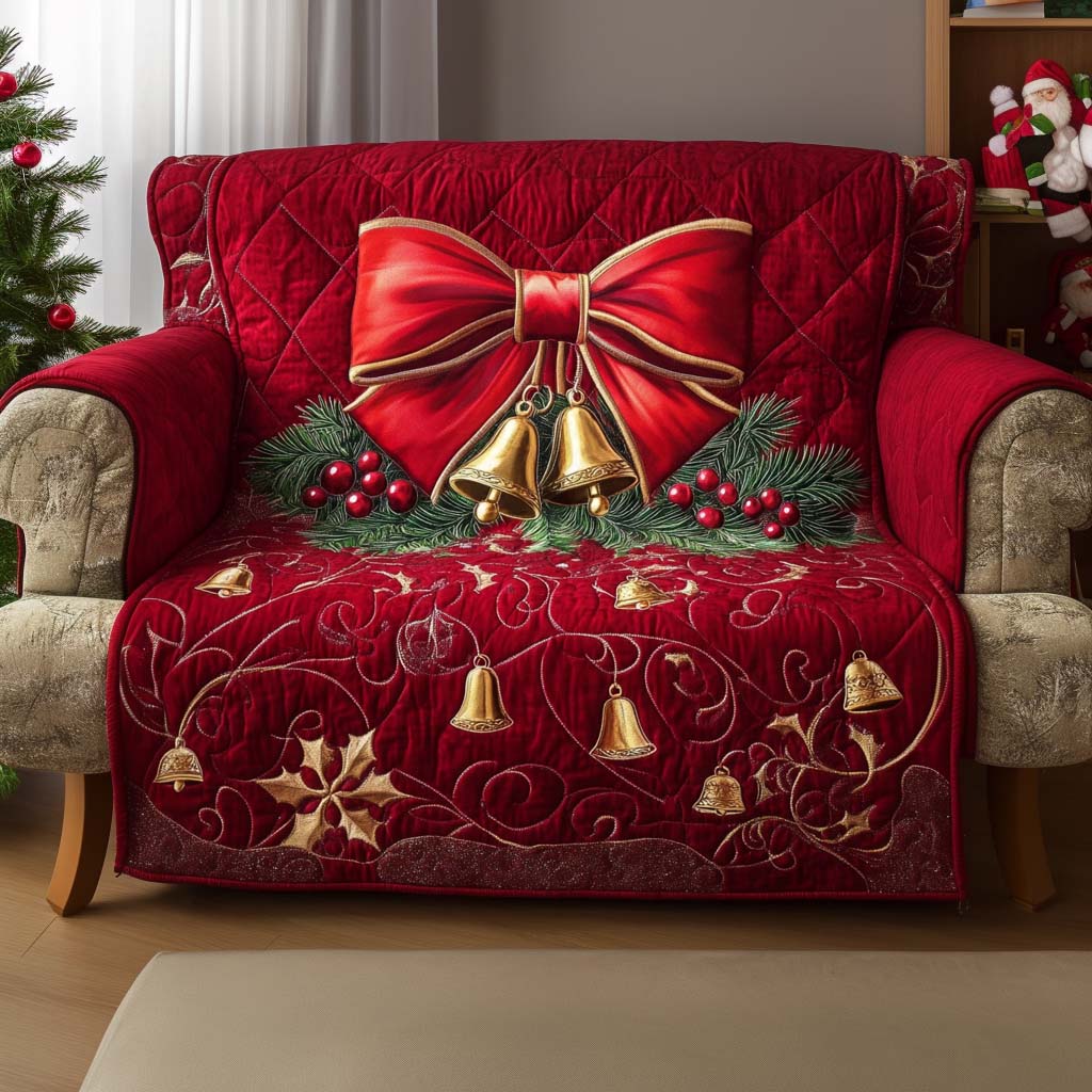 Holly Jolly Quilted Sofa Cover Christmas Living Room Decor