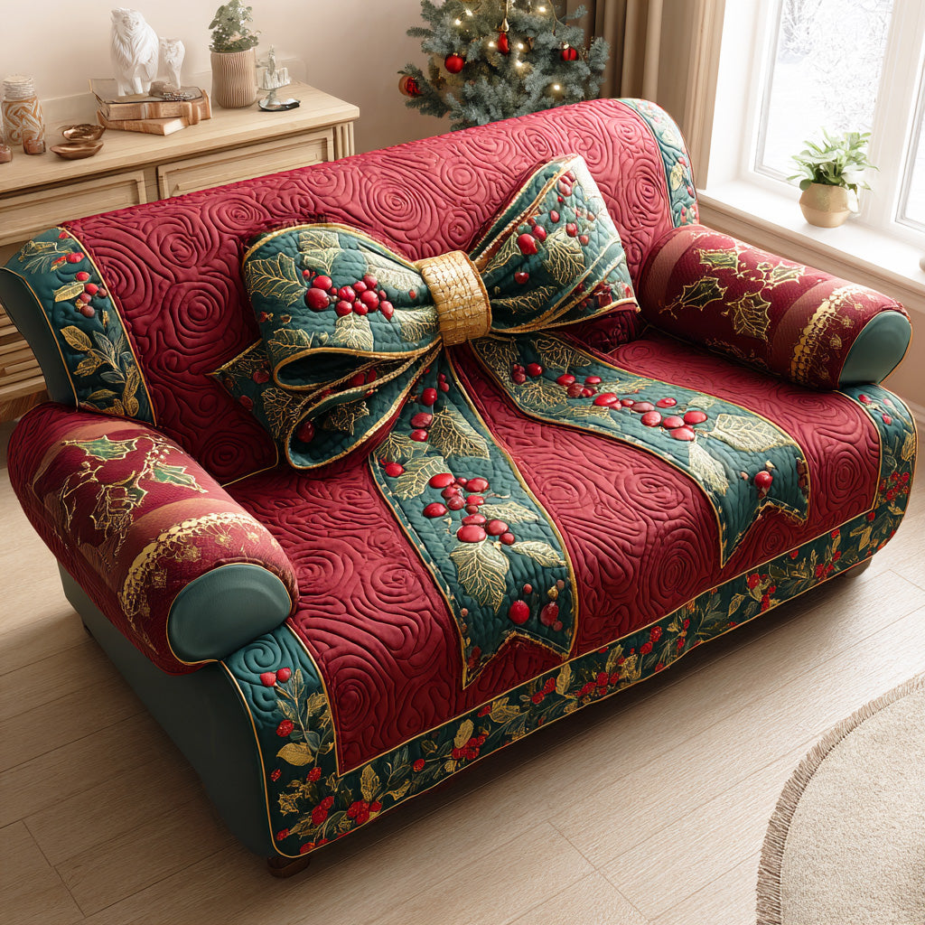 Silver Bow Dance Quilted Sofa Cover Winter Chic Gift for Her