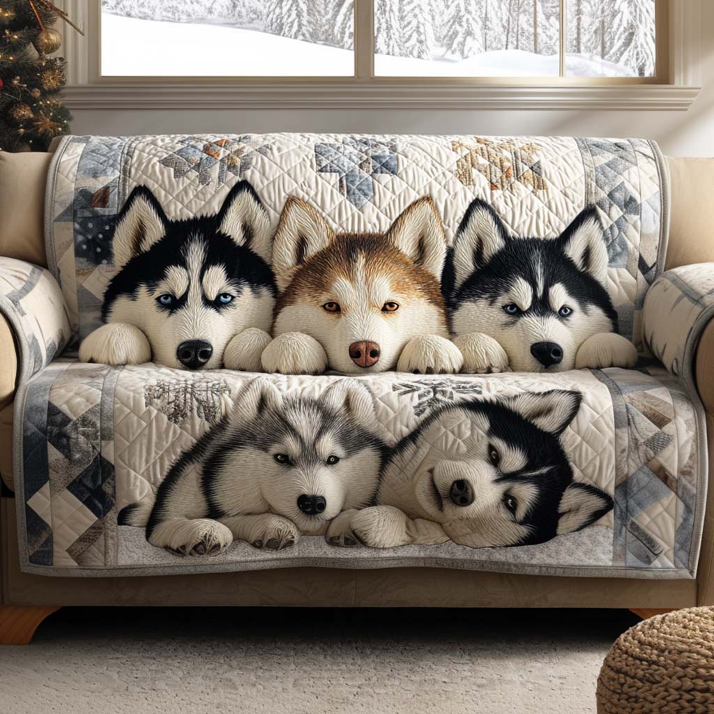 Snow Trail Guardian Quilted Sofa Cover Christmas Living Decor Dog Gifts For Dog Lovers.