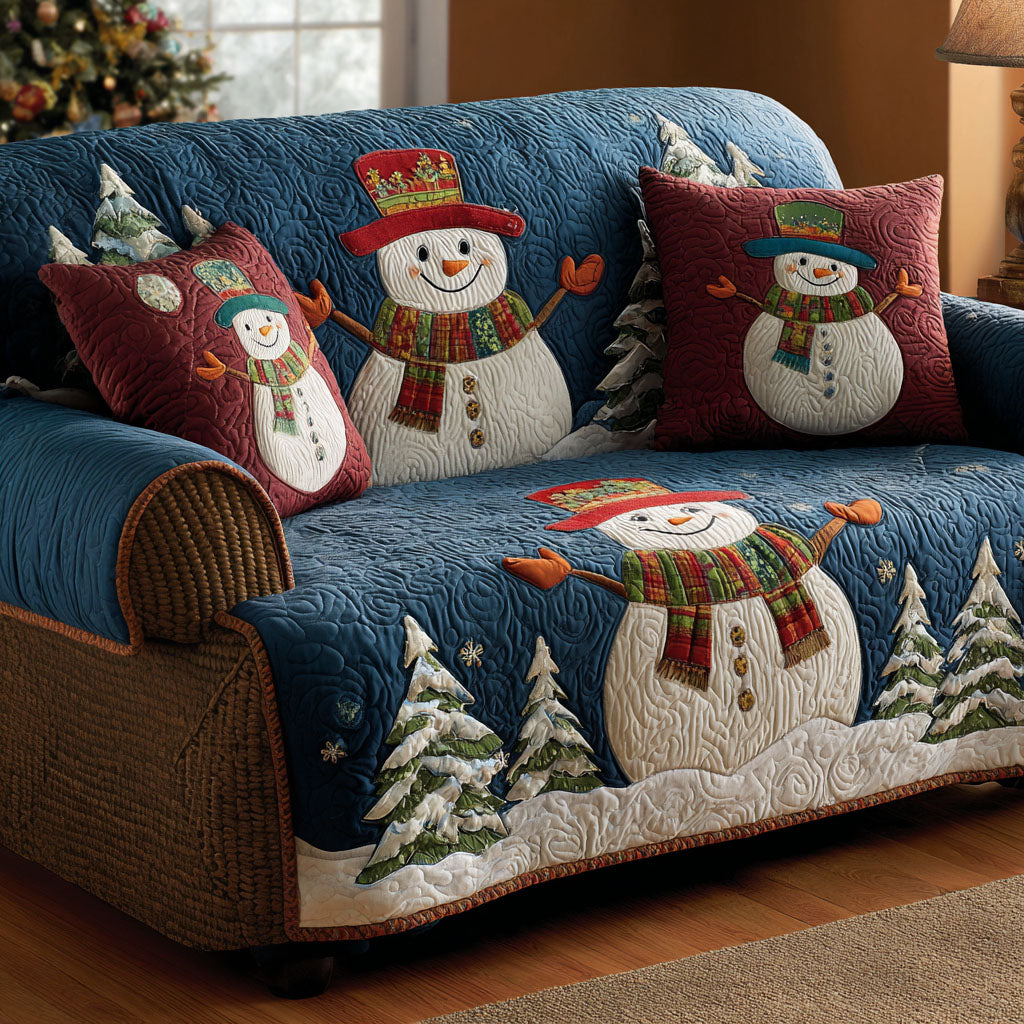 Warm Cocoa Snowmen Quilted Sofa Cover Christmas Home Decor
