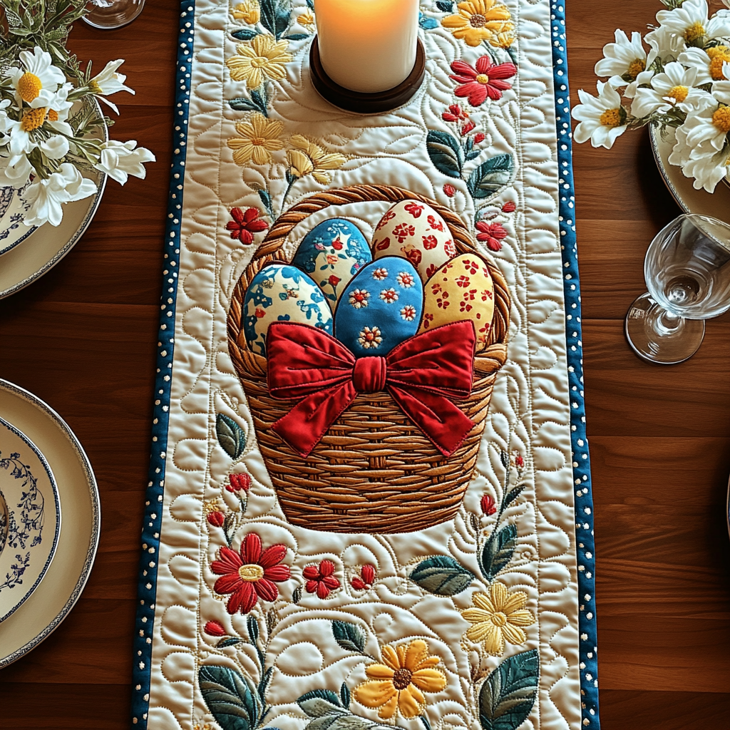 - Quilted Table Runner designed to add a touch of elegance and warmth to your dining space.