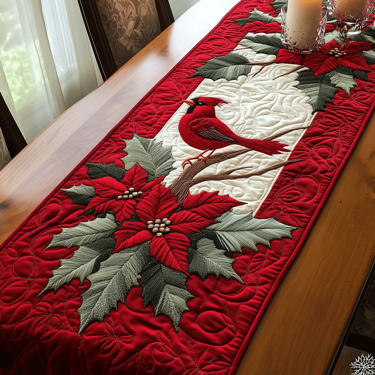 - Quilted Table Runner designed to add a touch of elegance and warmth to your dining space.