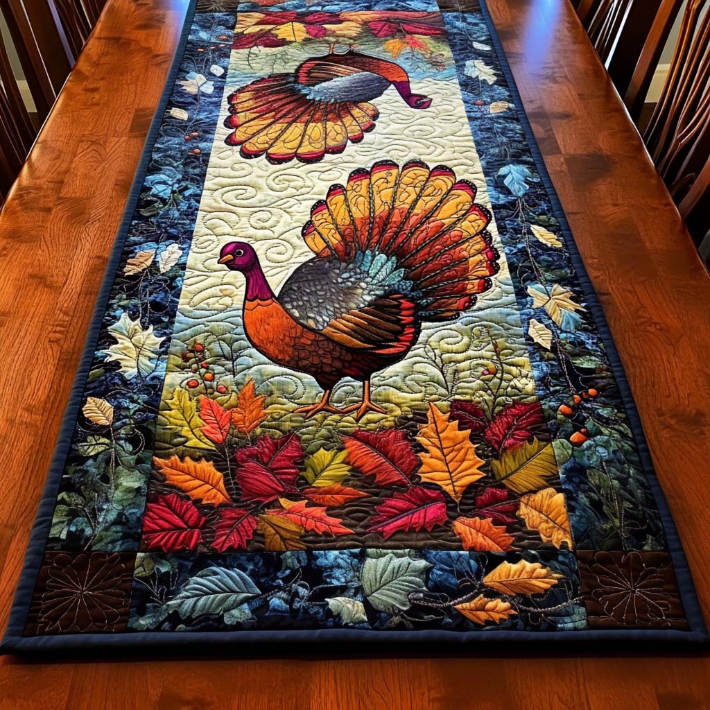 - Quilted Table Runner designed to add a touch of elegance and warmth to your dining space.