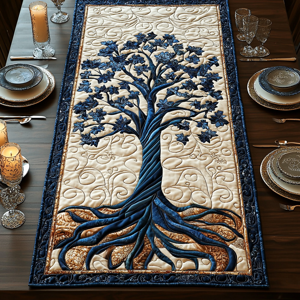 - Quilted Table Runner designed to add a touch of elegance and warmth to your dining space.