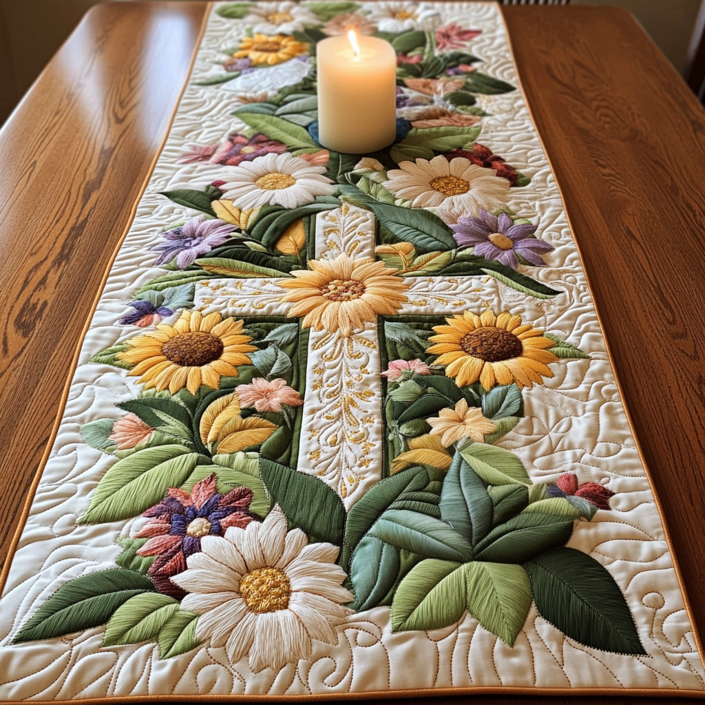 - Quilted Table Runner designed to add a touch of elegance and warmth to your dining space.