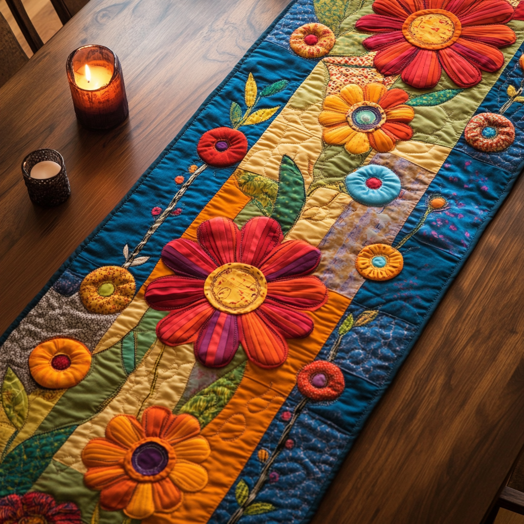 - Quilted Table Runner designed to add a touch of elegance and warmth to your dining space.