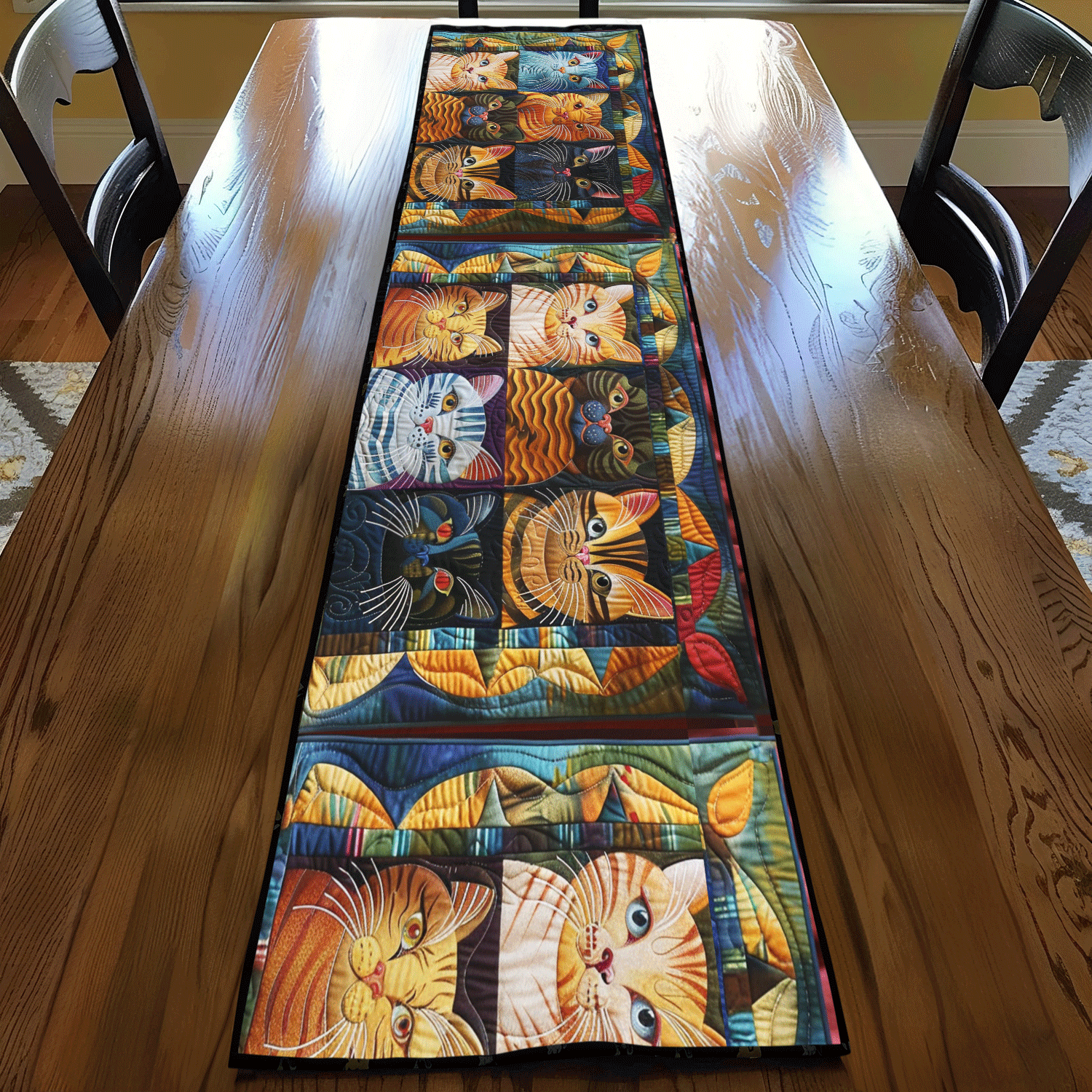- Quilted Table Runner designed to add a touch of elegance and warmth to your dining space.