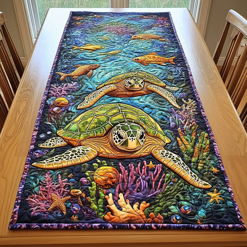 - Quilted Table Runner designed to add a touch of elegance and warmth to your dining space.
