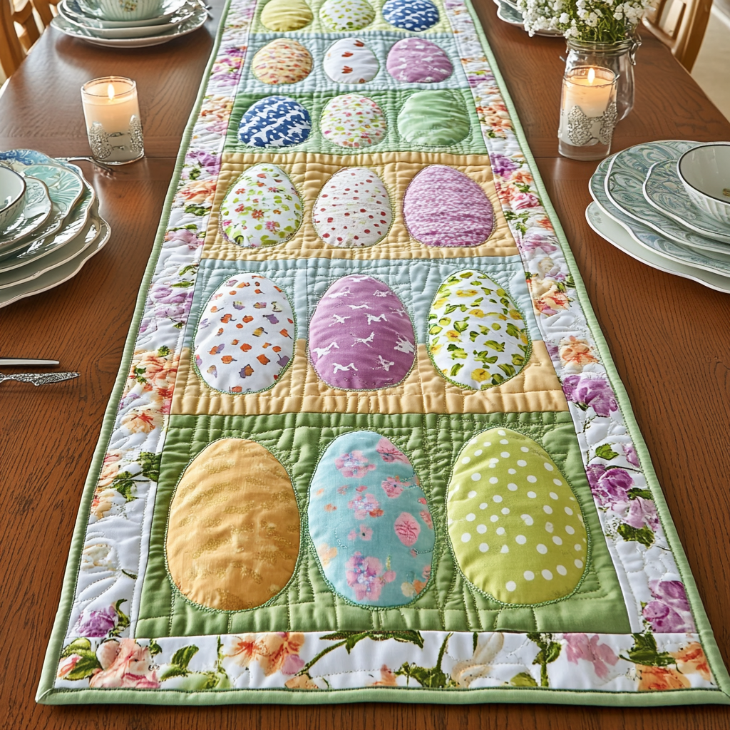 Egg Elegance Quilted Table Runner Easter Dining Table Decor Great Family Gifts.