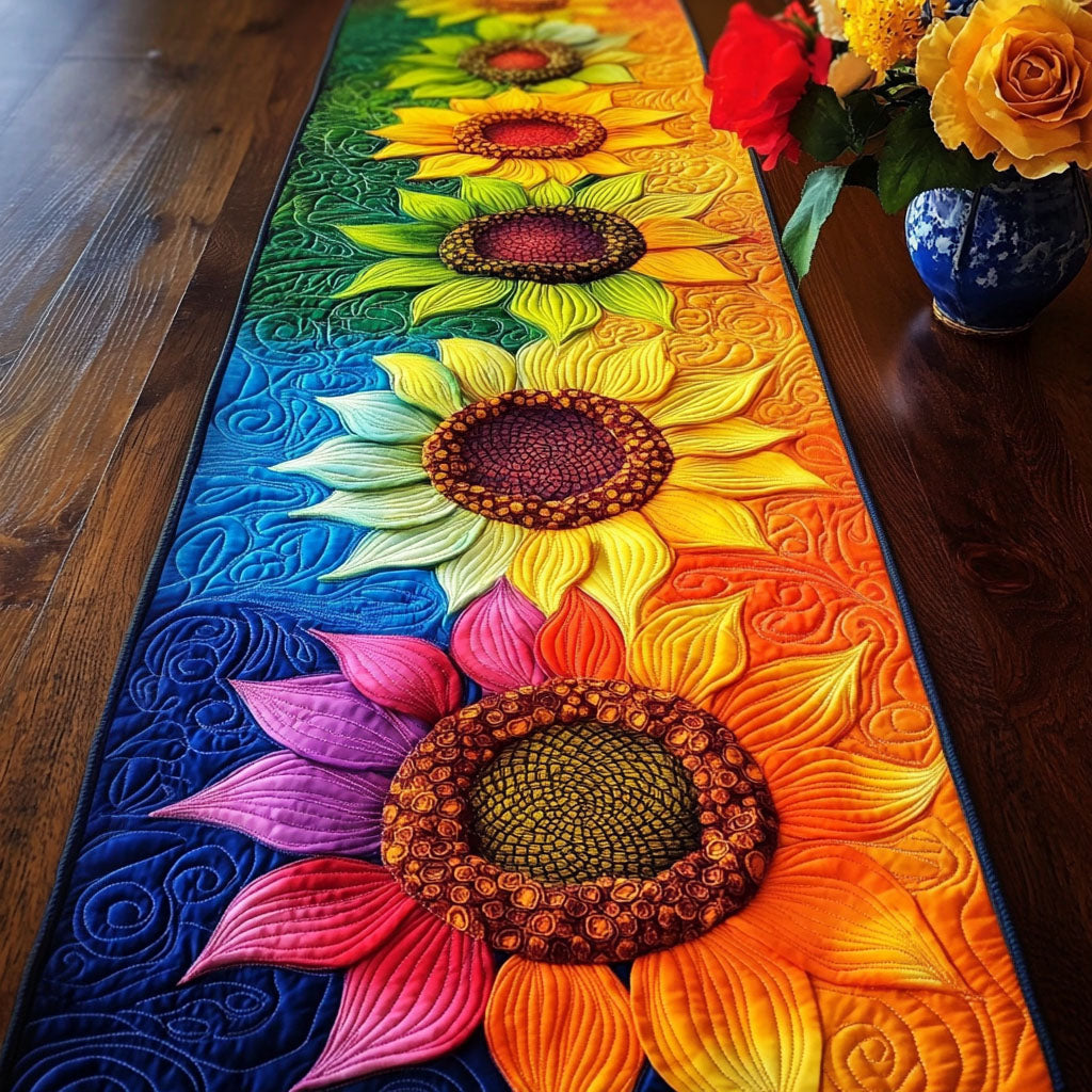 Golden Swirl Quilted Table Runner Dining Table Ideas Sunflower Presents.
