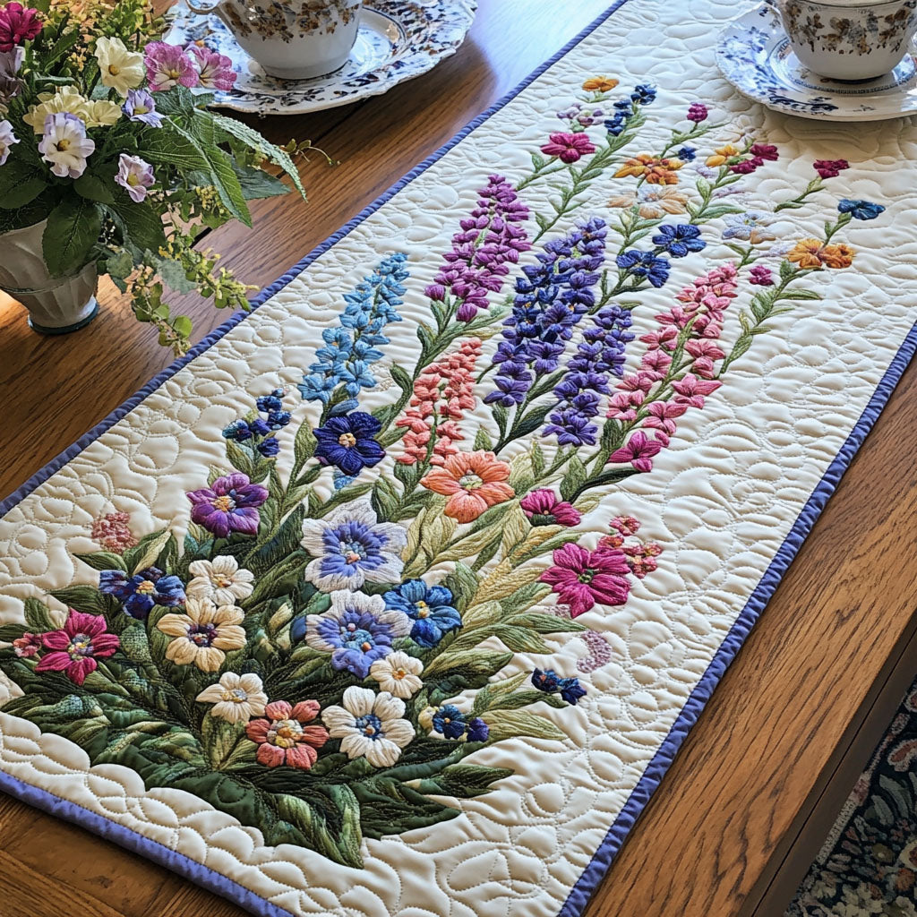 Larkspur Serenade Quilted Table Runner Holiday Runner Dining Gifts For The Flower Lover.