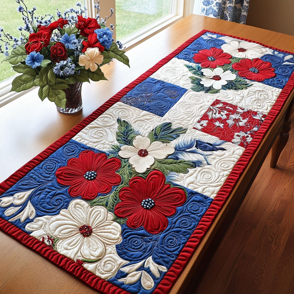 - Quilted Table Runner designed to add a touch of elegance and warmth to your dining space.