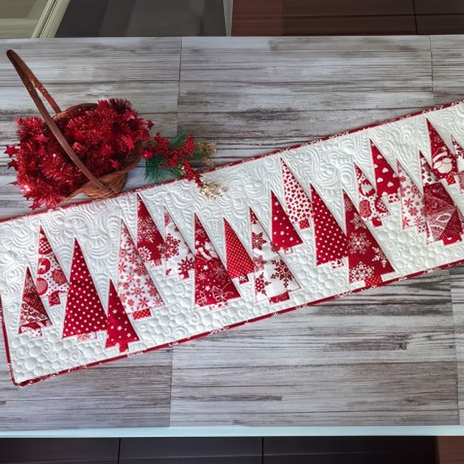 - Quilted Table Runner designed to add a touch of elegance and warmth to your dining space.