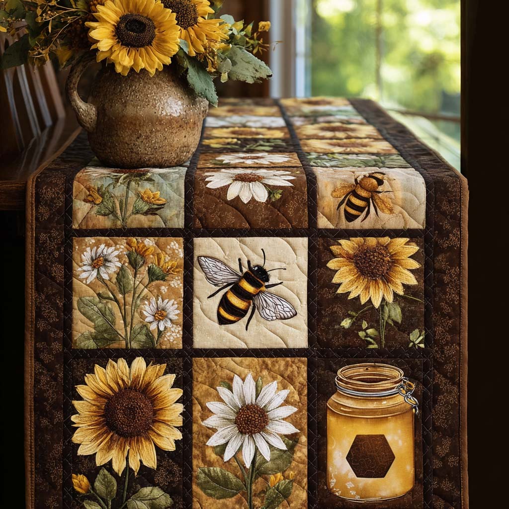 Spring Nectar Quilted Table Runner Kitchen Decor Gifts For Bee Lovers.