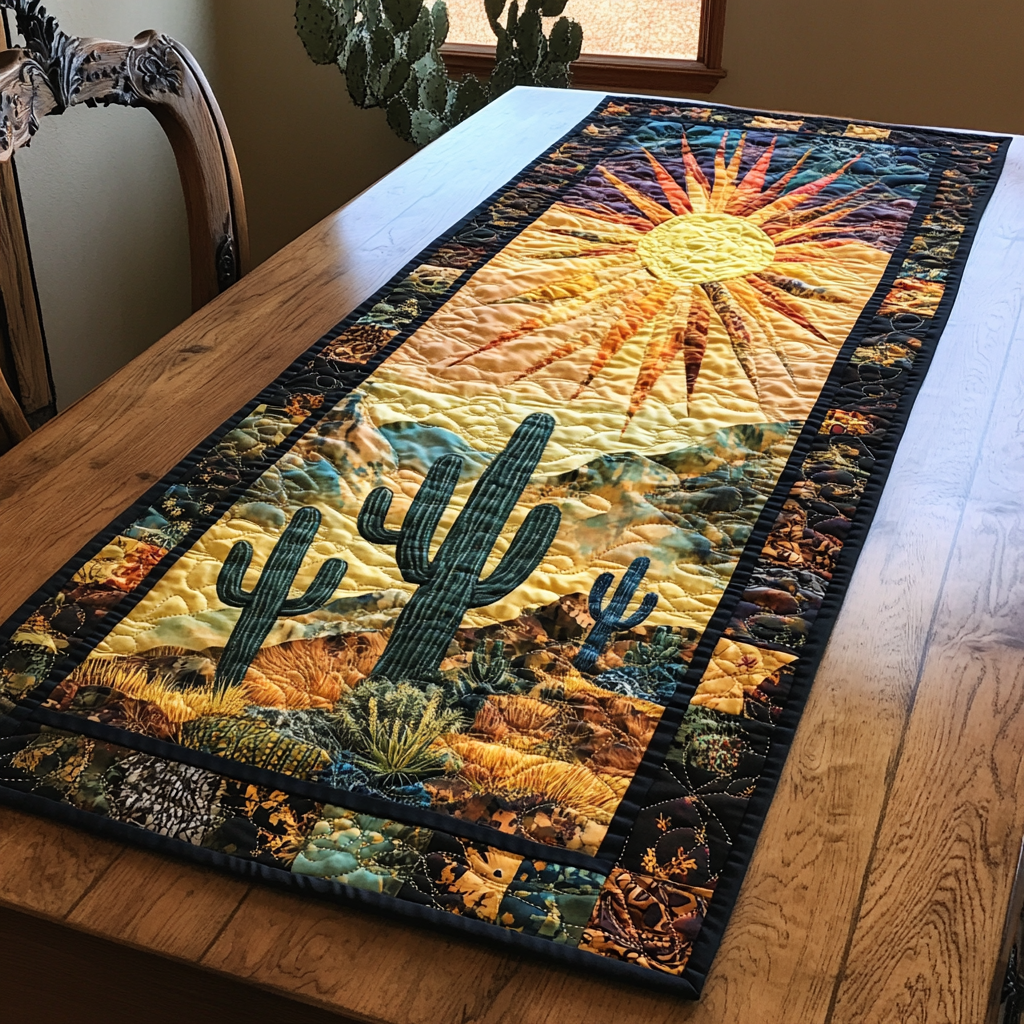 Succulent Serenity Quilted Table Runner Dining Room Table Decor Cactus Gifts For Her.