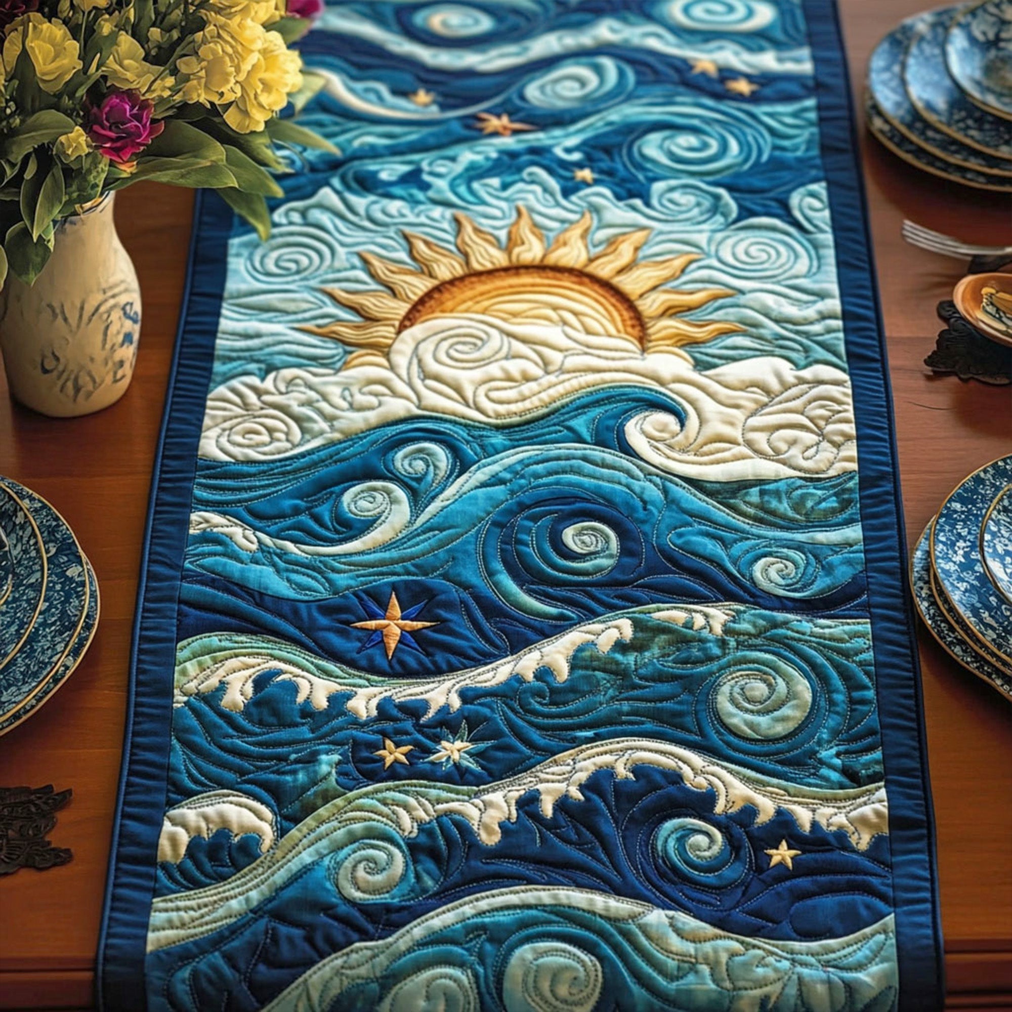 Sun and Moon Flow Quilted Table Runner Dining Table Ideas Themed Gifts For Ocean Lovers.