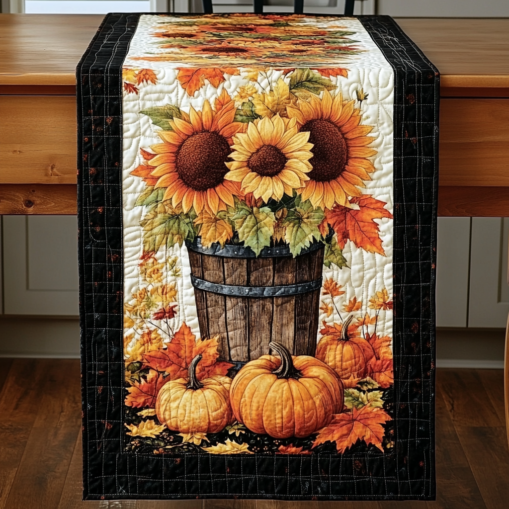 - Quilted Table Runner designed to add a touch of elegance and warmth to your dining space.
