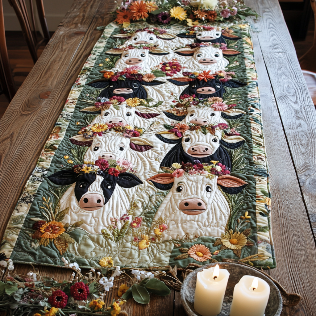 - Quilted Table Runner designed to add a touch of elegance and warmth to your dining space.