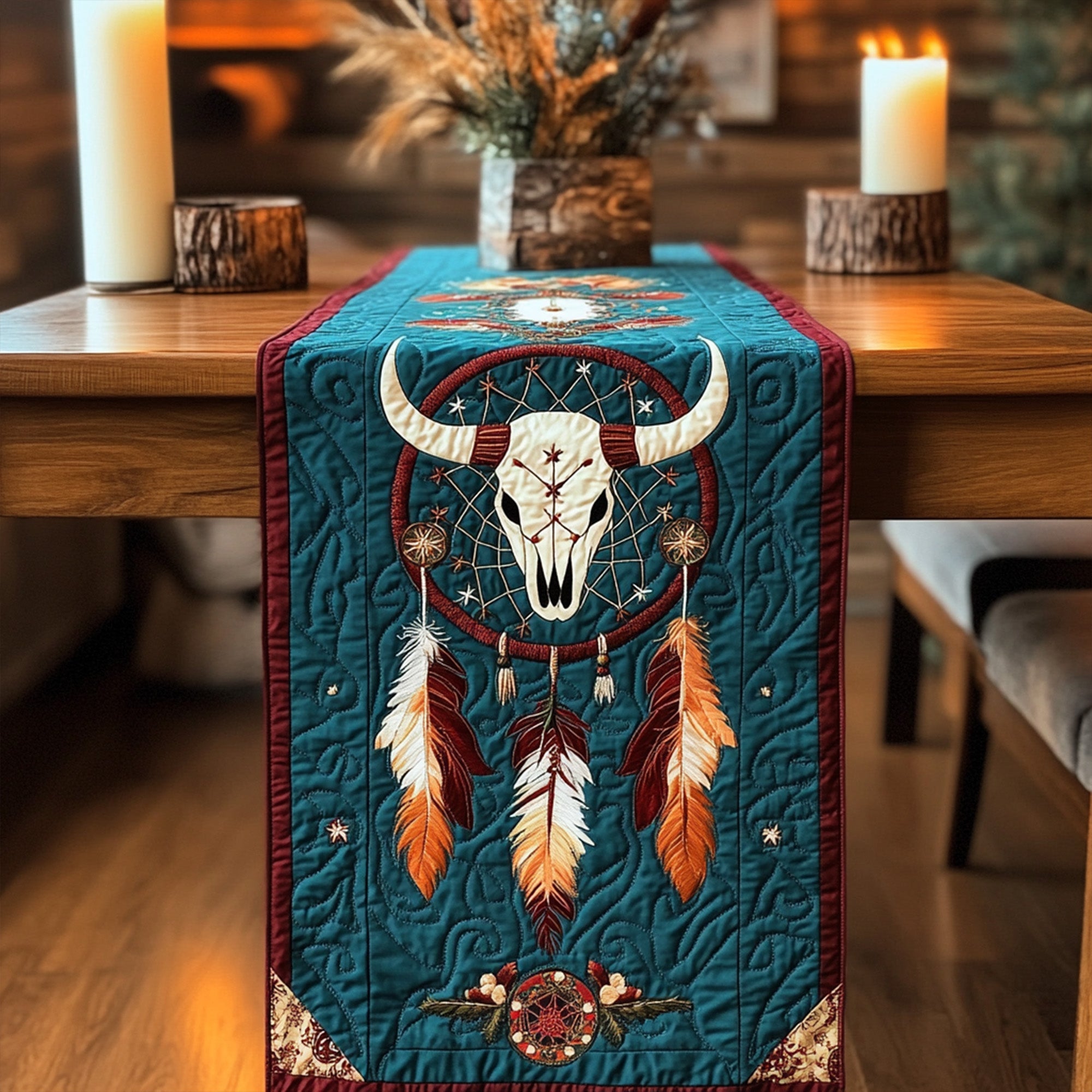 - Quilted Table Runner designed to add a touch of elegance and warmth to your dining space.
