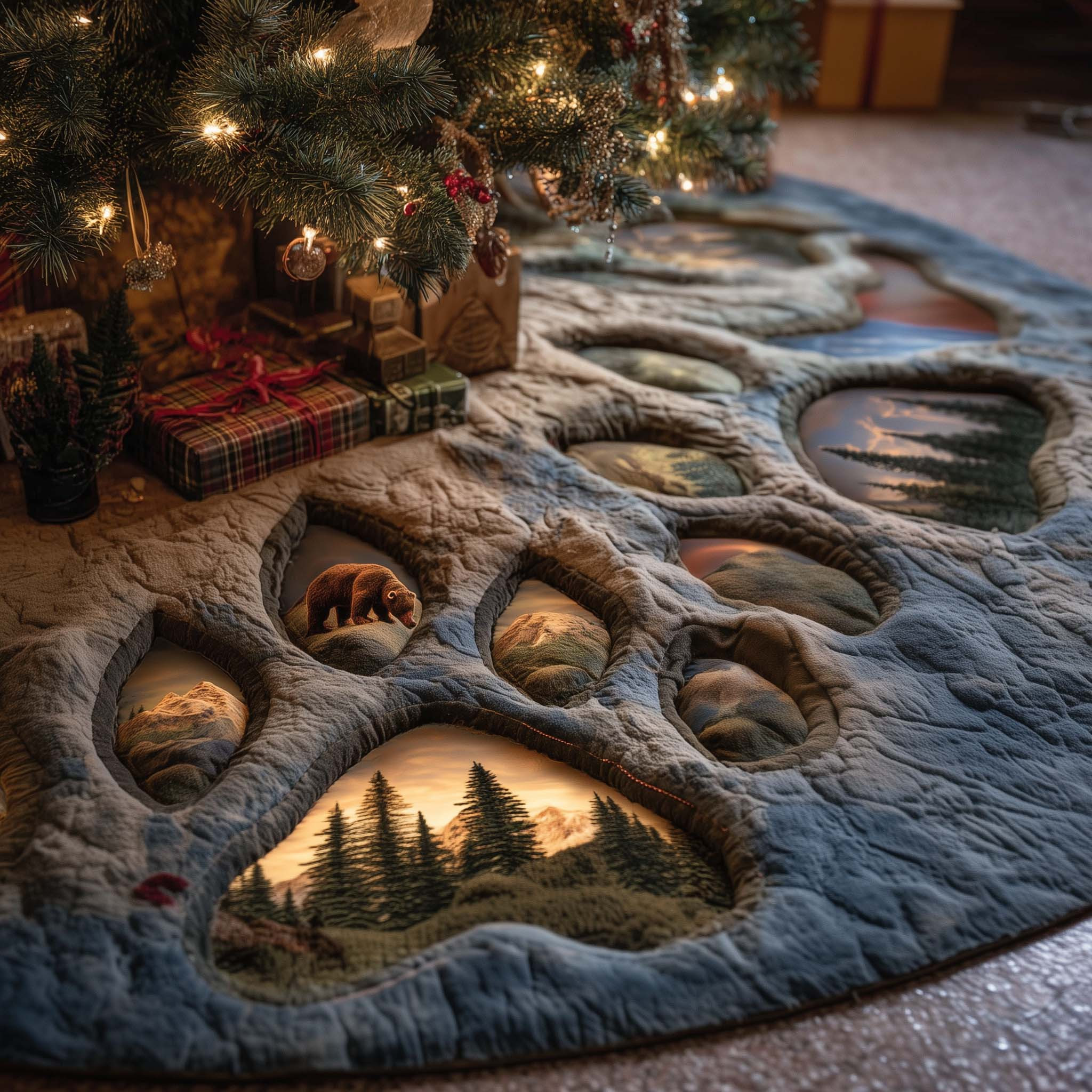 Bear Forest Spirit Quilted Tree Skirt Xmas Room Decorating Bear Gifts For Women.