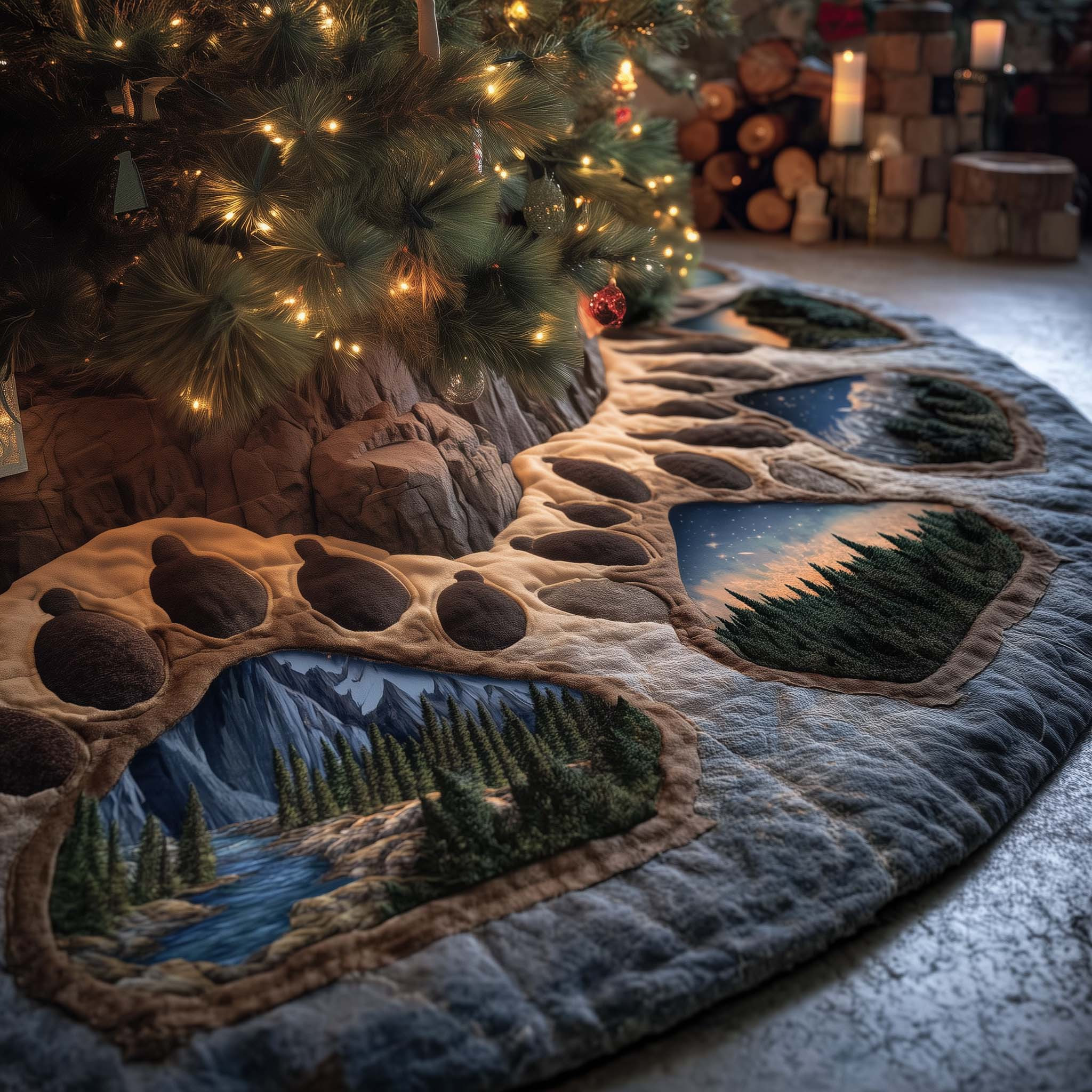 Bear Paws Quilted Tree Skirt Unique Decoration Xmas Gift Cute Bear Themed Presents.