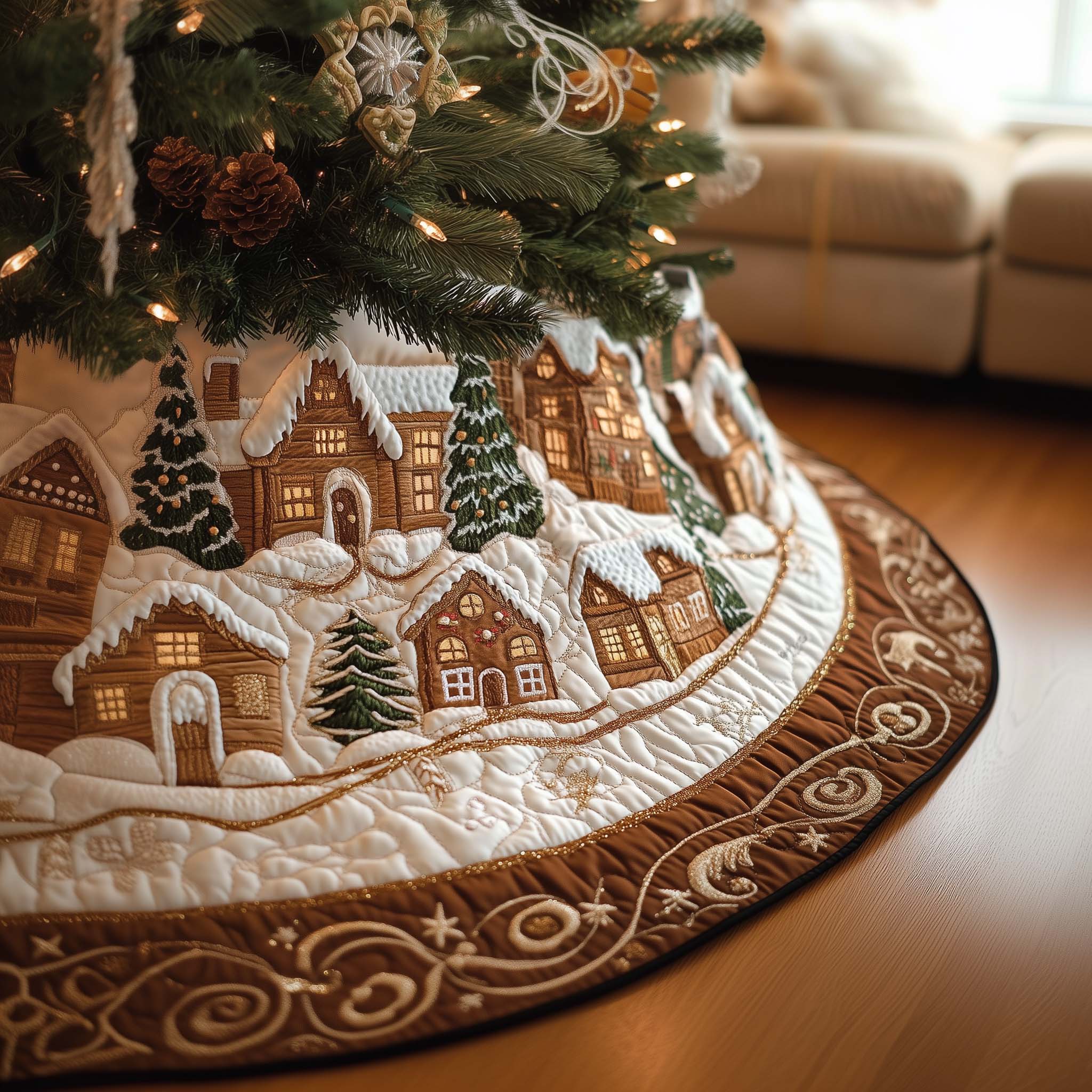 - The tree skirt adds a festive charm to Christmas mornings, creating a beautiful backdrop for the gifts beneath the tree. It elegantly conceals the tree stand and tangled light cords, making it perfect for family holiday decor, Christmas displays, and as a thoughtful gift.