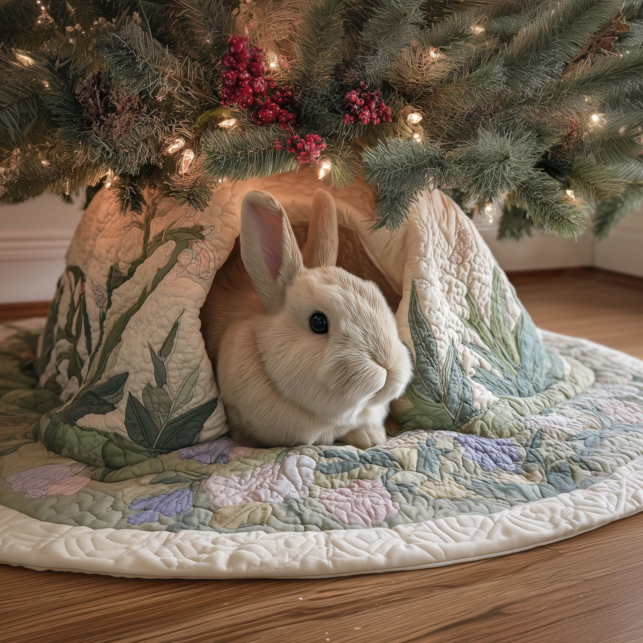 Bunny In Cave Christmas Quilted Tree Skirt Xmas Tree Bottom Cover Home Decor Bunny Gifts.