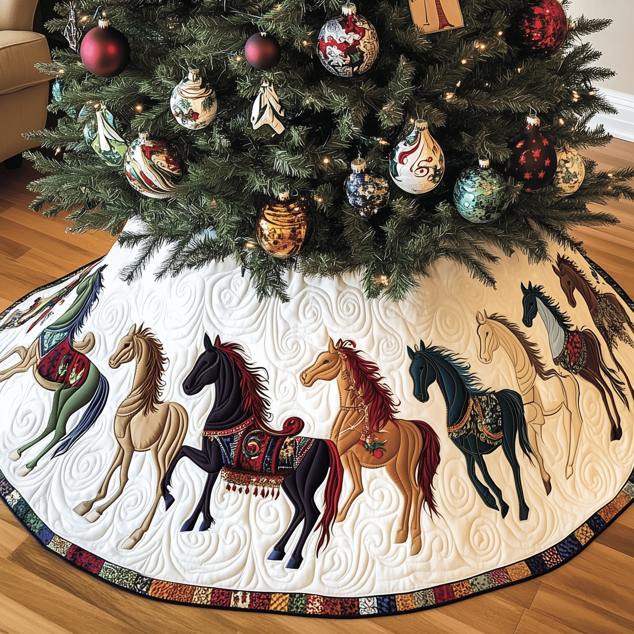 Christmas Horse Quilted Tree Skirt Small Christmas Tree Skirt Christmas Presents For Great Grandma