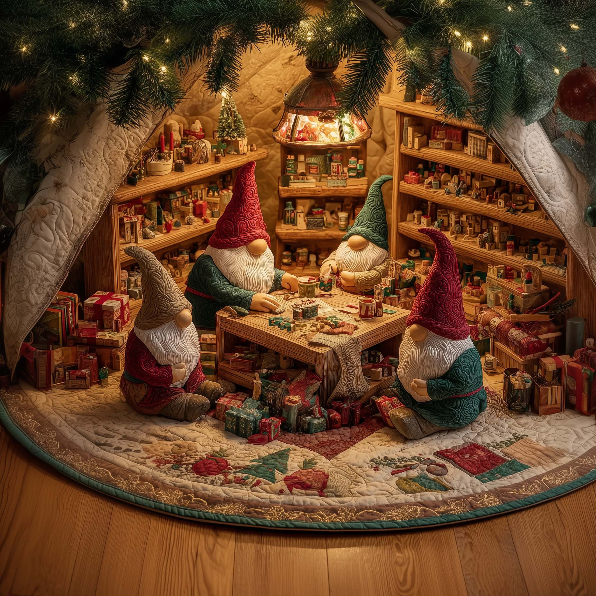 Gnome Holiday Time Christmas Quilted Tree Skirt Xmas Tree Base Cover Gnome Gifts For Him