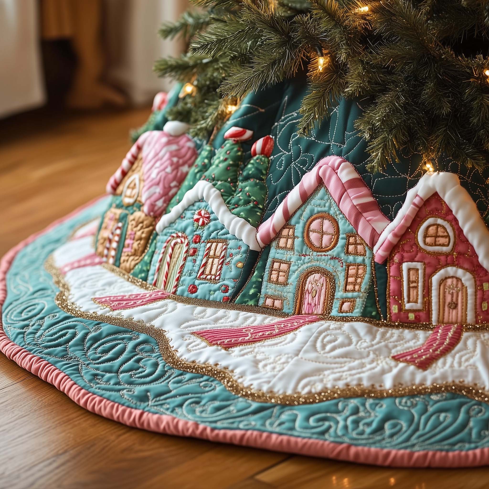 Gnome with Poinsettia Garden Quilted Tree Skirt Gnome Gifts For Her Decor Xmas