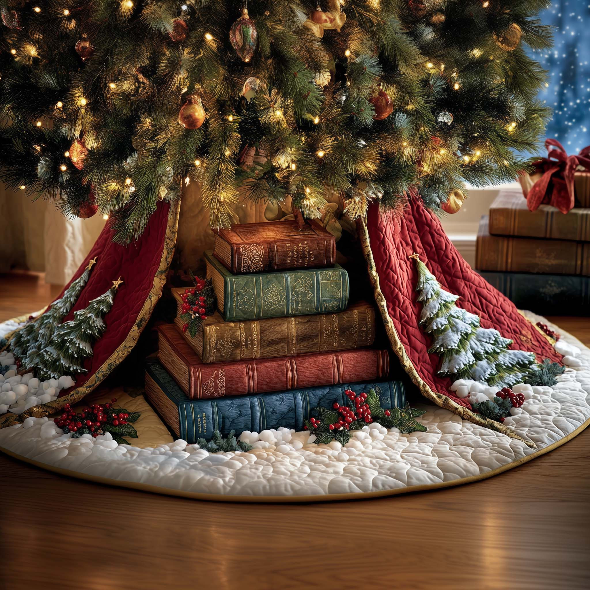 Highland Cow Bear Christmas Quilted Tree Skirt Xmas Tree Base Cover Cozy Highland Cow Gifts