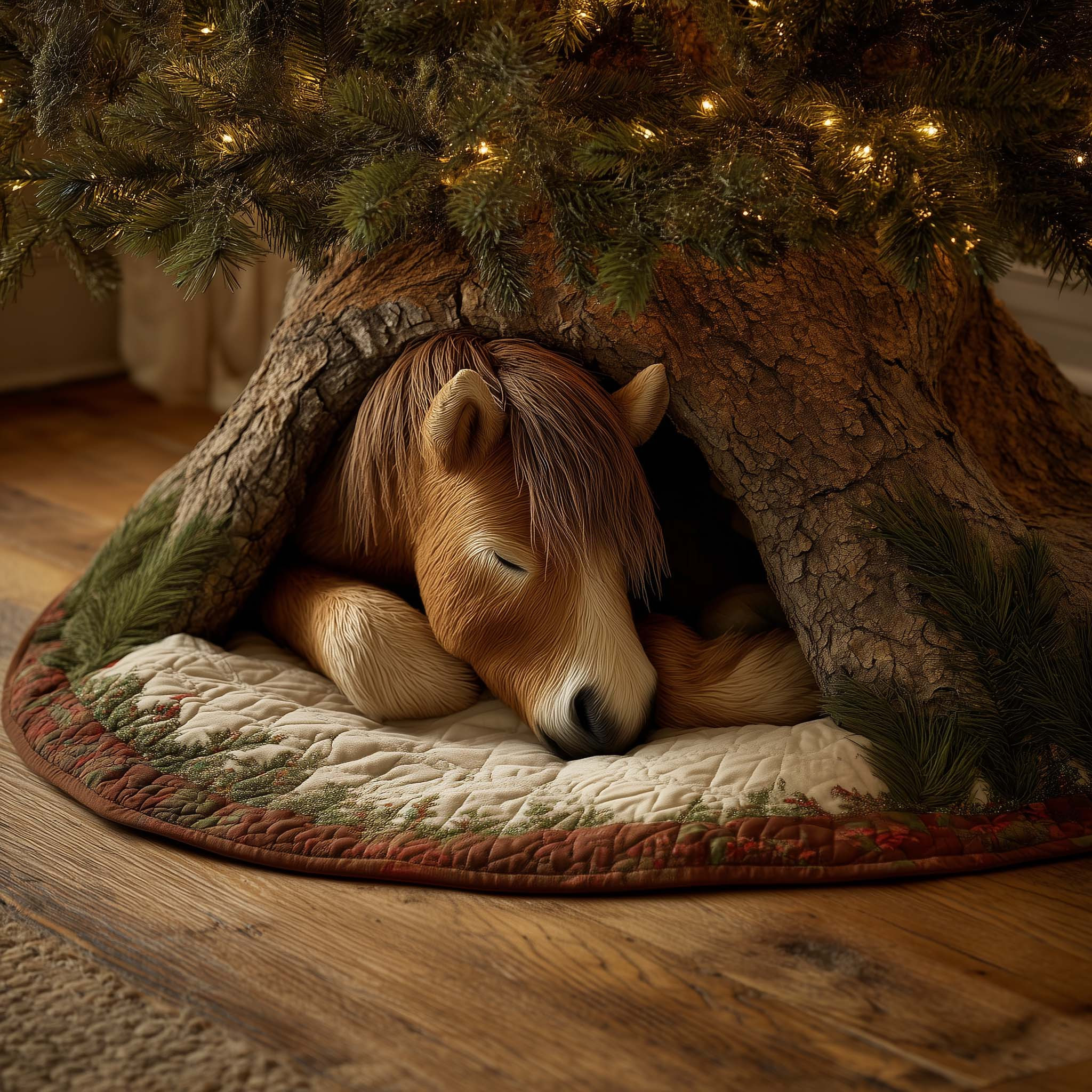 Horse Stable Christmas Quilted Tree Skirt Xmas Tree Surround Horse Themed Gifts For Holiday.