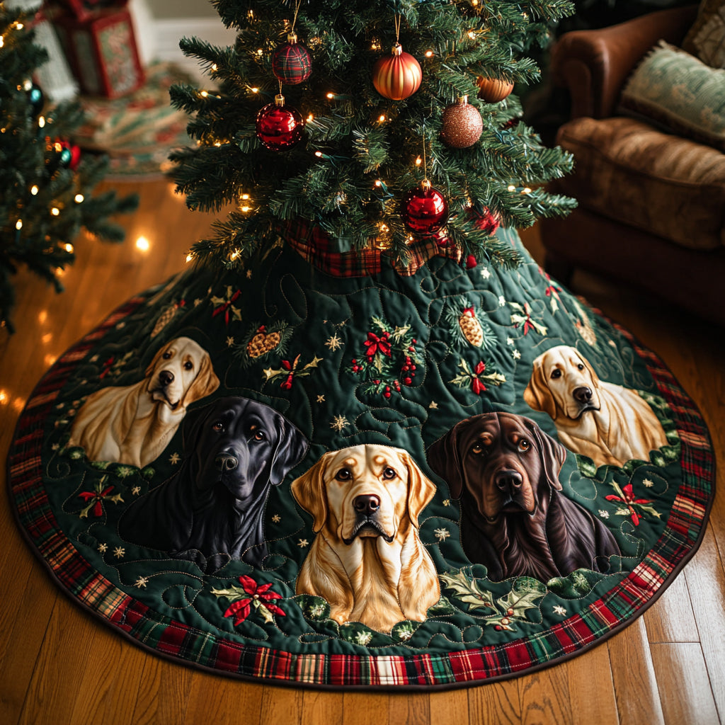 Jingle Paws Christmas Quilted Tree Skirt Xmas Indoor Decorations Gifts For Labrador Retriever Lovers