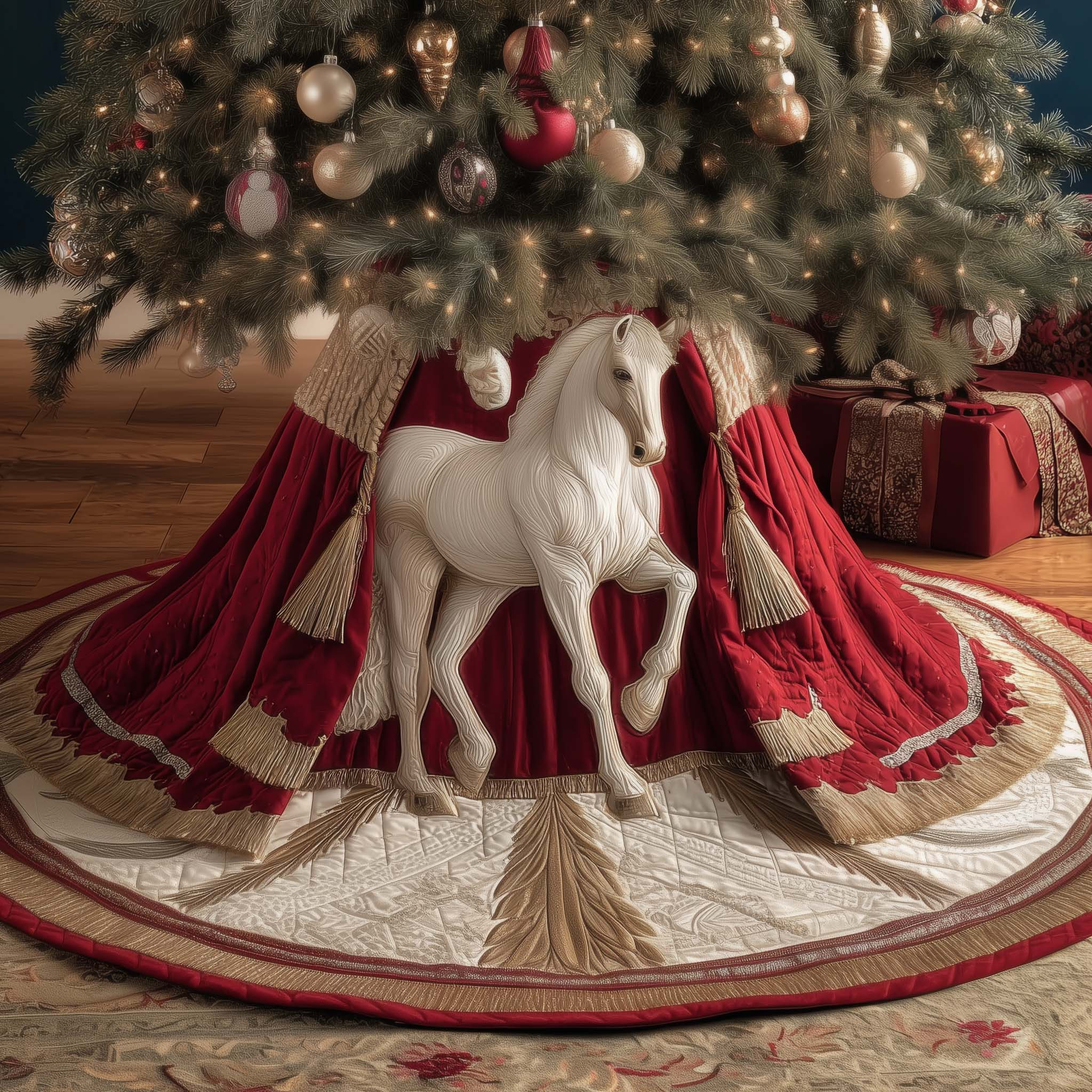 Stallion Napping Christmas Quilted Tree Skirt Xmas Tree Surround Horse Themed Gifts Decor.