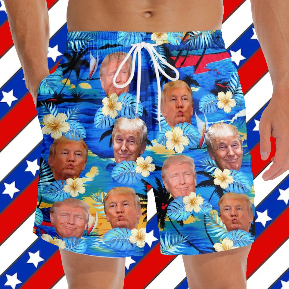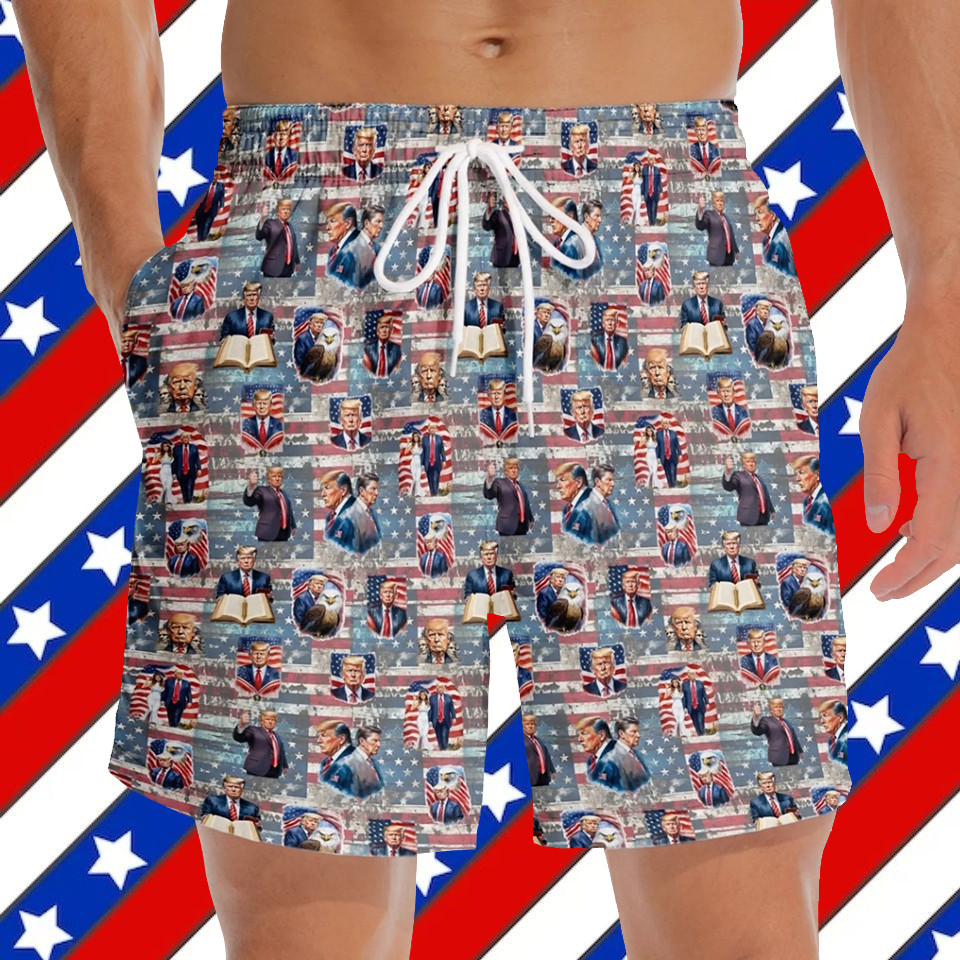 Trump 2025 America Flag Hawaiian Shorts Trump Merchandise Gifts For Patriots.