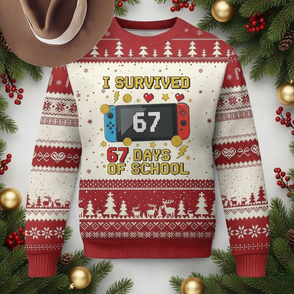 67 Days Of School Ugly Christmas Jumper Teacher Classroom Apparel Funny Gifts For Xmas.