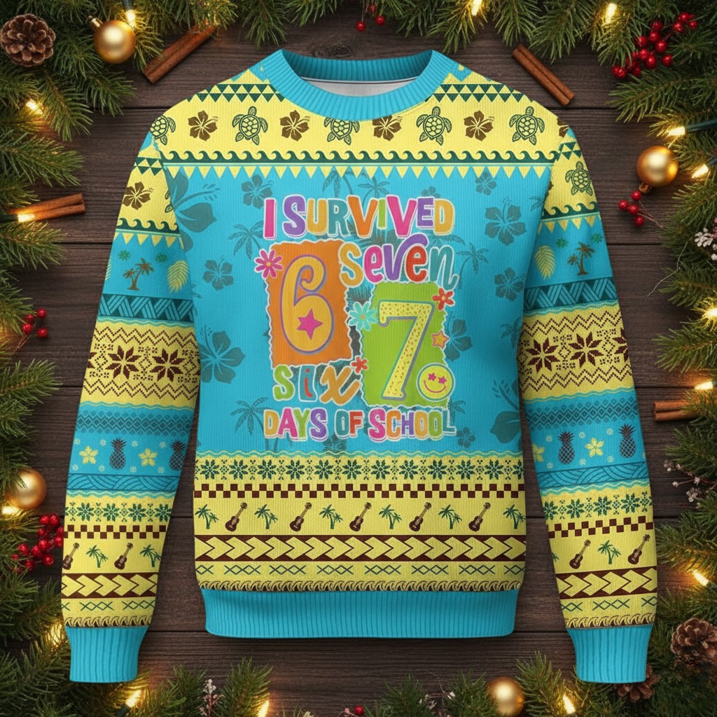 67 Days Of School Ugly Christmas Sweater Pencil Graphic Cozy Apparel Gifts For Students