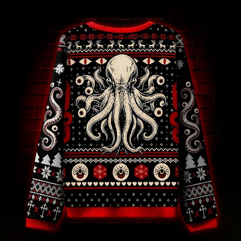 Beholder Dungeons Ugly Christmas Sweater Scary Xmas Clothing Gifts For Friends.